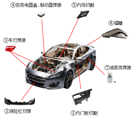 南京帝耐激光科技有限公司产品涵盖五轴激光切割机、激光保险杠切焊一体机、三维激光塑料焊接机、轨迹激光塑料焊接机及激光管路焊接机等五大类十余种激光设备,满足多种汽车配件的焊接和切割。