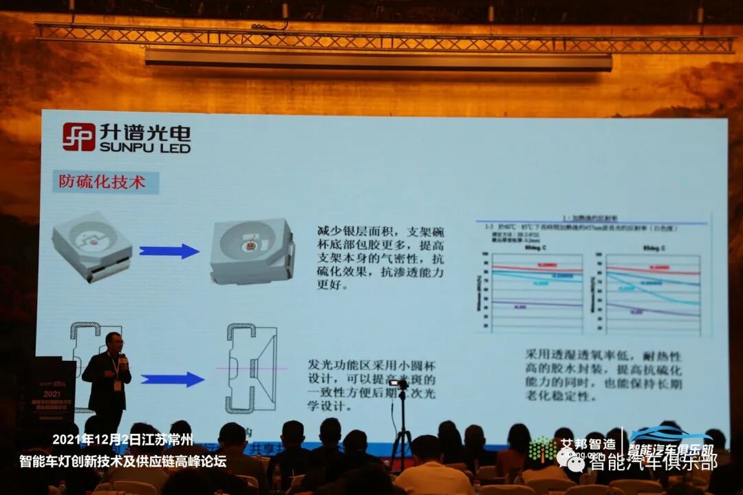 LED大灯往往是多个LED元器件构成,需要有一个控制模块对整个系统进行控制。在本次论坛上尹辉副总经理主要从车灯相关法规、车用LED关键封装技术、车用LED器件发展趋势及新产品介绍以及升谱光电公司简介几方面给大家做了详细讲解。