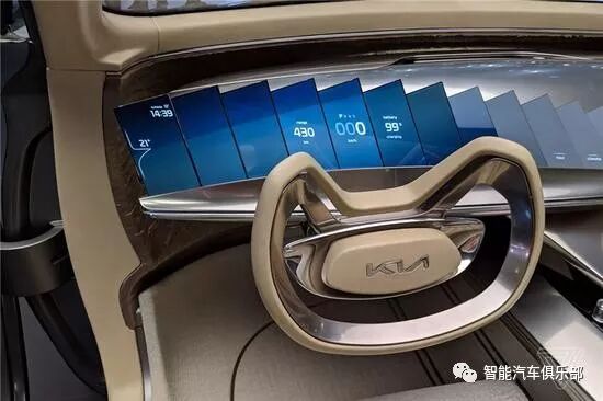 今年3月份日内瓦车展上,起亚推出名为Imagine的概念车,这辆车的一大亮点是使用了21块智能手机大小的液晶显示屏,组成了汽车的中控屏和仪表盘。