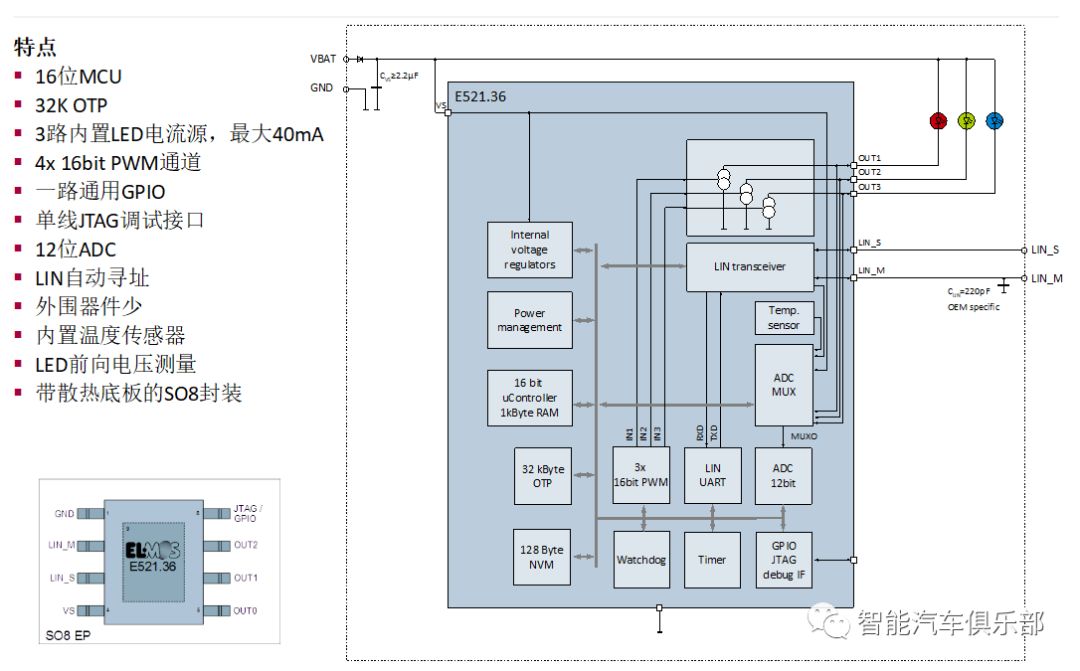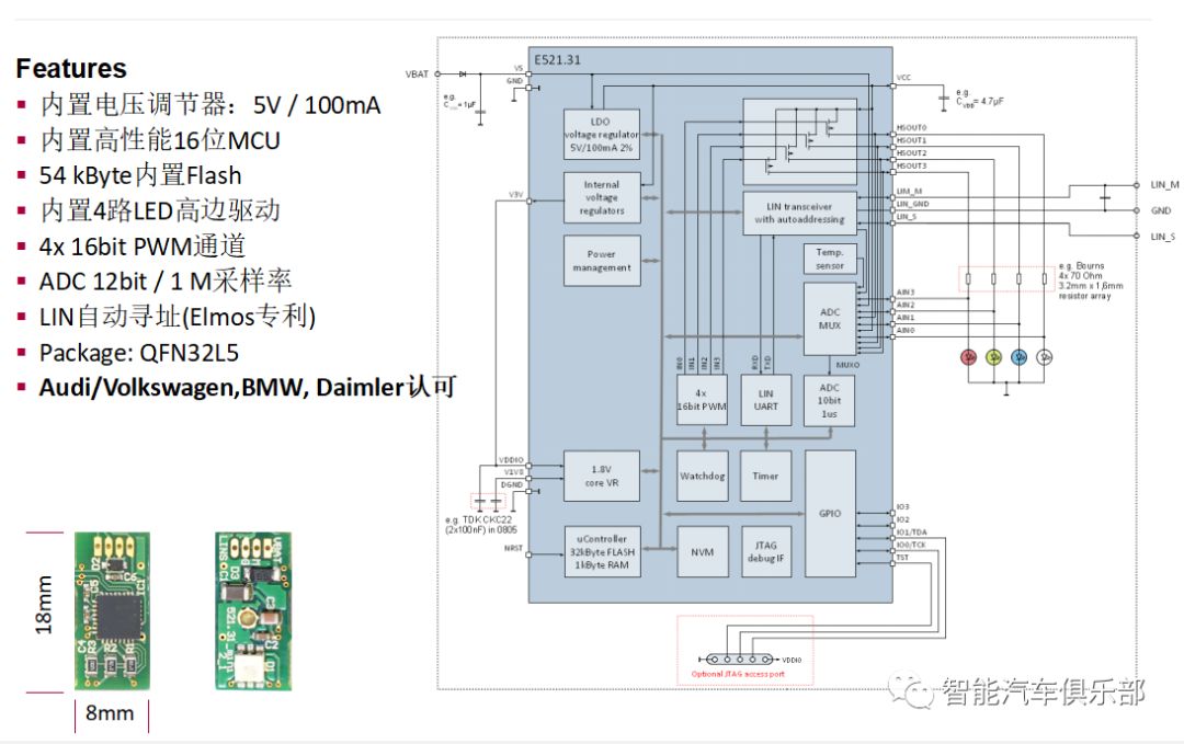 Elmos E521.31: RGB/白光氛围灯控制器特点