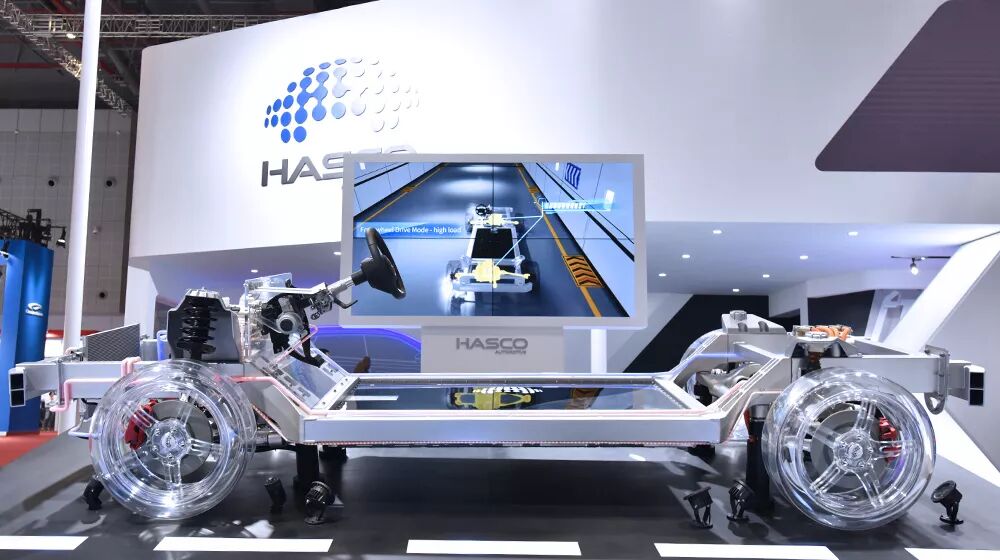 除了展示车外氛围灯外,还值得一提的是新能源车底盘平台,这是一款可配置、集成、系统的新能源车底盘平台,其搭载了能够满足不同客户需求的一体式电驱动系统、可实现高级辅助驾驶的执行机构以及轻量化底盘结构解决方案,不仅能让观众近距离地观看底盘平台的工艺和结构,更通过多媒体互动的方式,让观众更深入的了解底盘平台各子系统的工作原理和在整车上实现的功能。