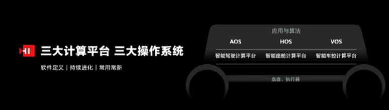 HI品牌也将提供算力和操作系统,包括三大计算平台,智能驾驶计算平台、智能座舱计算平台和智能车控计算平台,以及三大操作系统AOS(智能驾驶操作系统)、HOS(智能座舱操作系统)和VOS(智能车控操作系统)。在算力和操作系统的支持下,汽车就可实现软件定义,持续的开发新功能,不断优化用户的用车体验。
