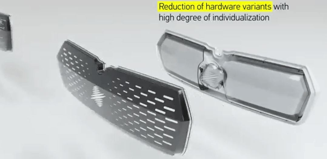 库尔兹的这款格栅面板材料需要根据自动驾驶汽车在人工智能、设计、耐久性等方面的要求进行量身定制;样式应该包含电子及光电元件,坚固的表面不仅具备强大的耐用性,同时拥有出色的深度效果和自我修复能力,并且支持雷达和激光雷达功能;