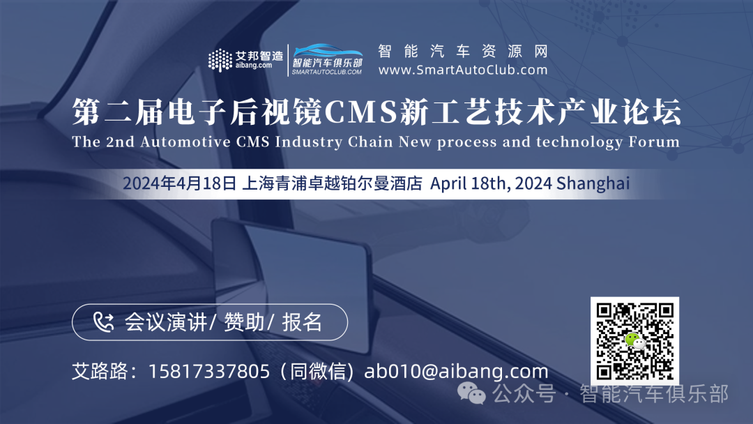 活动推荐五:第二届汽车电子后视镜CMS新工艺技术产业论坛(2024年4月18日 上海)