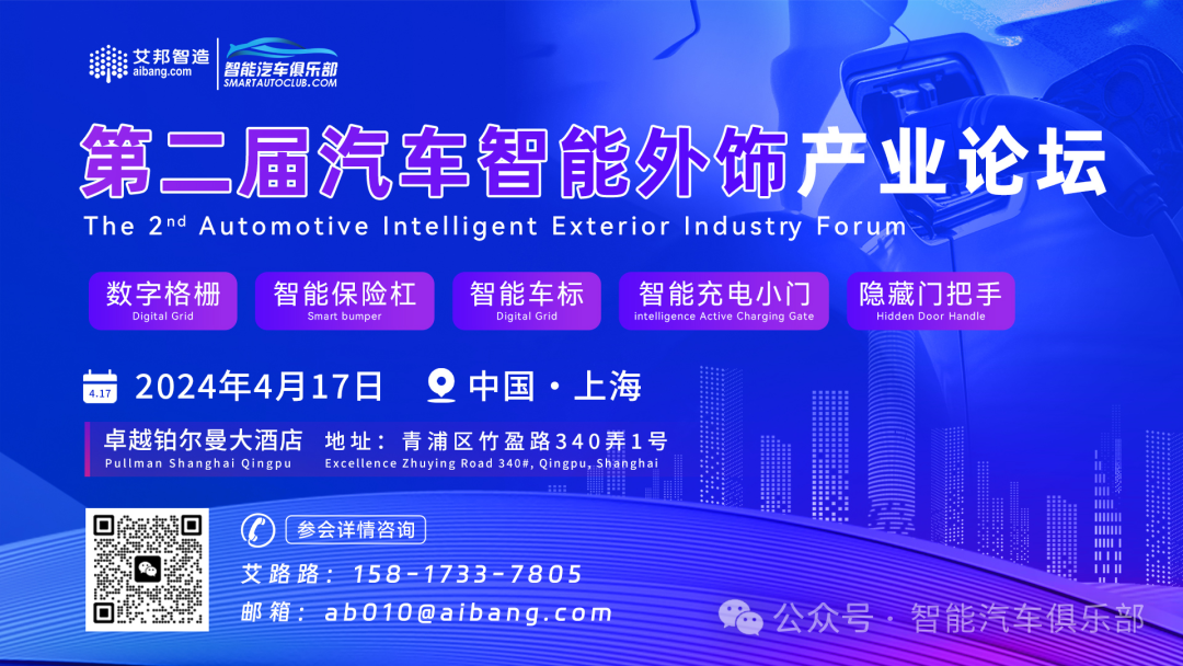 点击阅读原文即可报名第二届汽车智能外饰产业论坛
