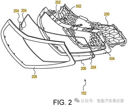 该专利介绍了围绕格栅周边延伸的底座、接收在围绕格栅周边延伸的底座中的光导、用于在激活时照亮光导的光源、透镜覆盖底座和导光板,挡光板遮蔽透镜的内部,除了在导光板被照亮时来自导光板的光要通过的部分,以及覆盖透镜外部并具有预定的膜光导未被照亮时的表面外观,并且在光导被照亮时允许光穿过膜。